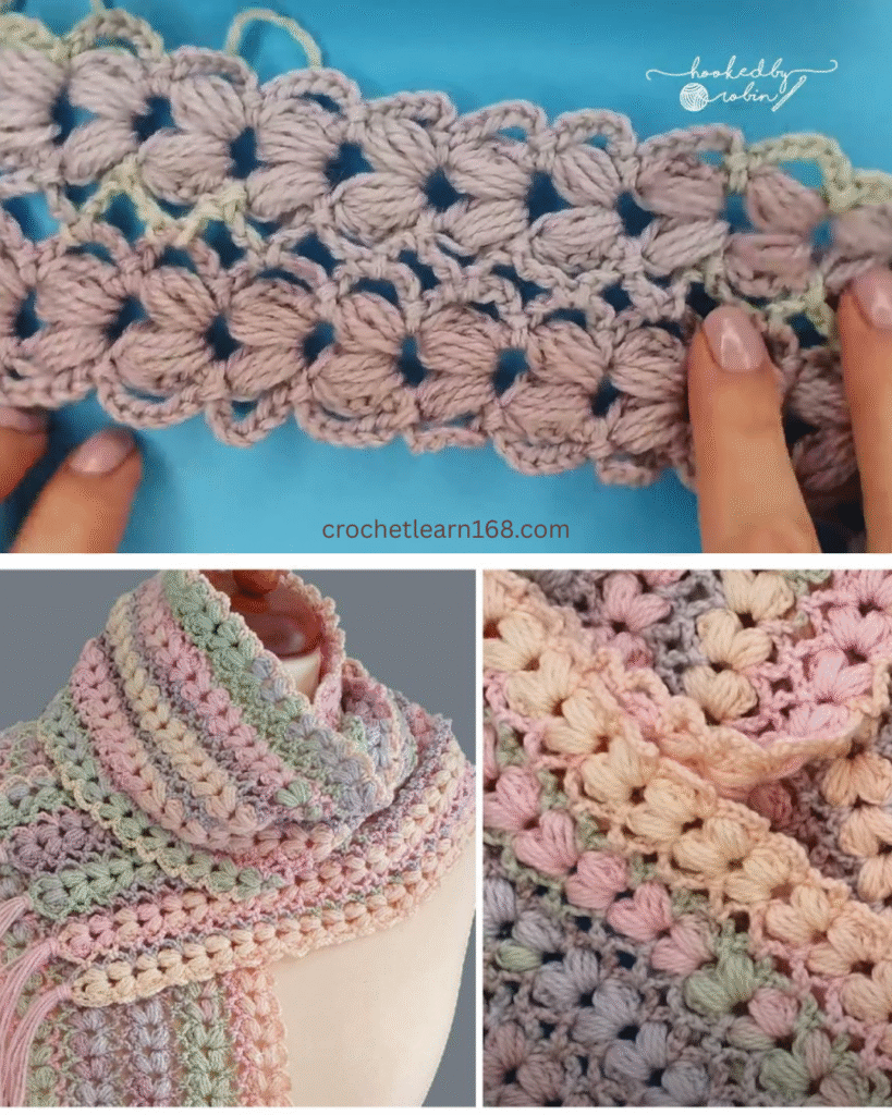 Length Guide | For a 60-inch (150 cm) scarf, aim for approximately 80-100 puff rows per strip, depending on your tension. |