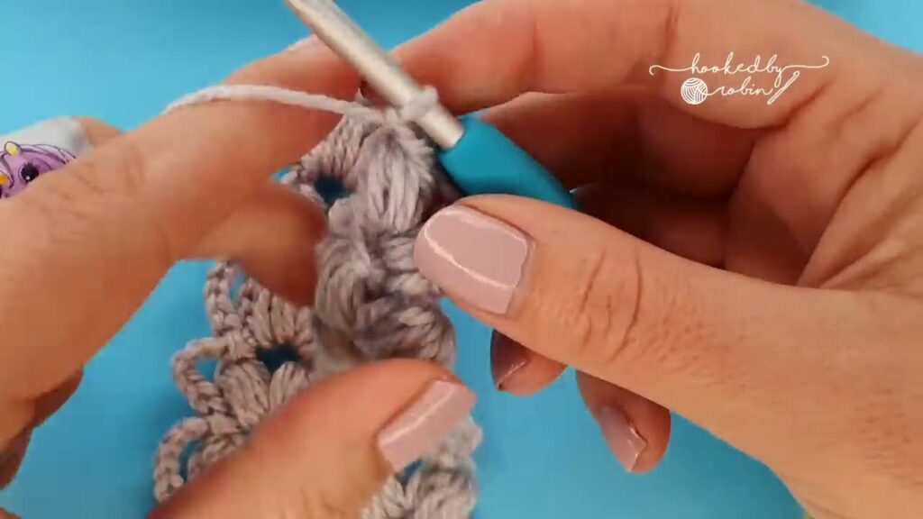- Once you reach the last puff row, Ch 7.